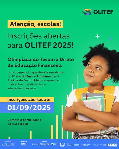 A oportunidade de mudar o próprio futuro pode estar a poucos cliques de distância para milhares de estudantes goianos e de todo o país. A Olimpíada do Tesouro Direto de Educação Financeira (Olitef) 2025 está com inscrições abertas, gratuitamente, até 01/09. Podem participar estudantes do 6º ao 9º ano do Ensino Fundamental e da 1ª a 3ª série do Ensino Médio, de escolas públicas e privadas.